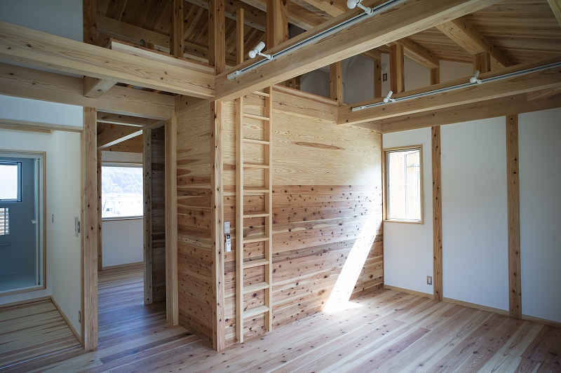 三つめは自然の素材を地域で循環しながら使うこと。住宅が無垢の材料の現しでできているのはそのためで、木の風合いの変化を楽しむため、塗装もされていない。ただ、見学会ではあるおじいさんから「なぜ、こんな節だらけの木を使ったんだ」と言われたそうで、そのあたりの意識を変えていくのはこれからのことだろう。