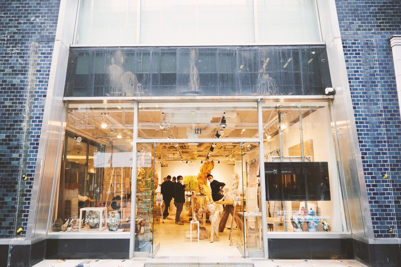 現在、新有楽町ビル1階、通りに面した空き店舗を空間メディアとして活用して展開する。当該空間にアーティストがアトリエを移設し、完成した作品のみならず、制作している様子も常に公開するという趣旨だ。通りを行き交うオフィスワーカーには、ガラス越しにその様子が自然に目に入ってくる。発案はアーティストの藤元明さんで、“展示”されるアーティストは約1ヶ月ごとに入れ替わっていく。