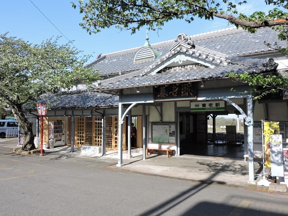 近くには養老公園だけでなく、温泉施設やキャンプ場など魅力的なスポットが点在している。まちの玄関口ともいえる養老電鉄養老駅の駅舎も実は歴史深いスポット。駅舎が完成したのは大正8(1919)年。実に100年以上の歴史が詰まった貴重な建物だ。