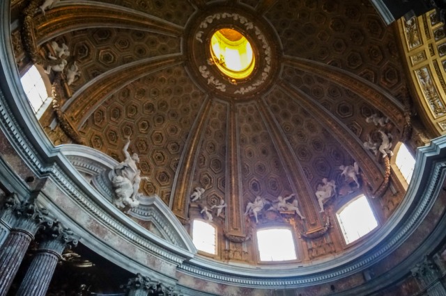 「聖堂の内部は膨大な数の彫刻や天井画・壁画で飾られ、芸術の力を総動員して人の心に迫ってくるようです。象徴的な何かによって信仰を伝えるというよりは、人の直感に訴える視覚体験をもたらす。反宗教改革の時代に、カトリックという宗教そのものの存亡を懸けた、巨大な意思がつくらせた建築であることを実感させられます」。