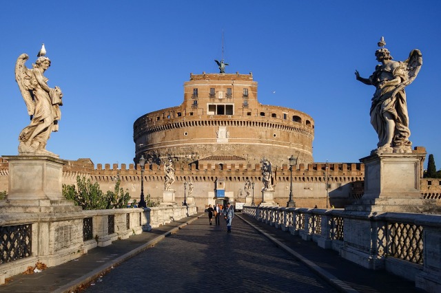 ハドリアヌス帝が自らの霊廟として建設を命じ、彼の死後に完成したのがサンタンジェロ城だ。中世に要塞に改造され、さらにルネサンス期には城砦に、その後牢獄や避難所としても使われた。イタリアにおける「ルネサンスの終わりの始まり」といわれる16世紀のローマ攻掠の際には、ローマ教皇クレメンス7世がここに逃げ込み、敗北に至っている。