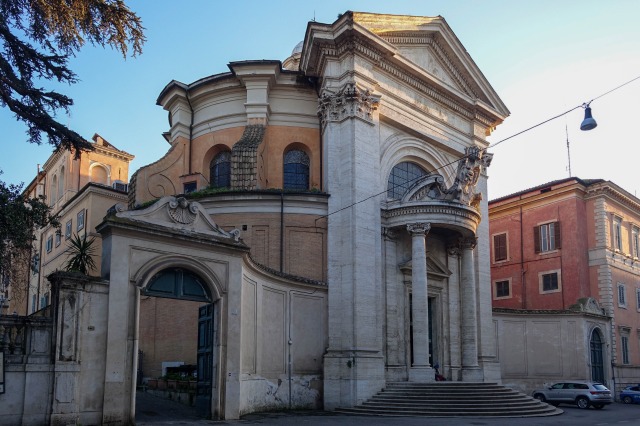 この半円形のポーチと湾曲した両翼の構成を採り入れたのが、ベルニーニの「サンタンドレア・アル・クイリナーレ聖堂」だ。通りに面して両側から腕を伸ばすように中心性を強調し、華麗な彫刻で飾ったポーチを設けている。楕円形の建築空間の上に楕円形のドームを載せた、比較的こぢんまりとした教会だ。