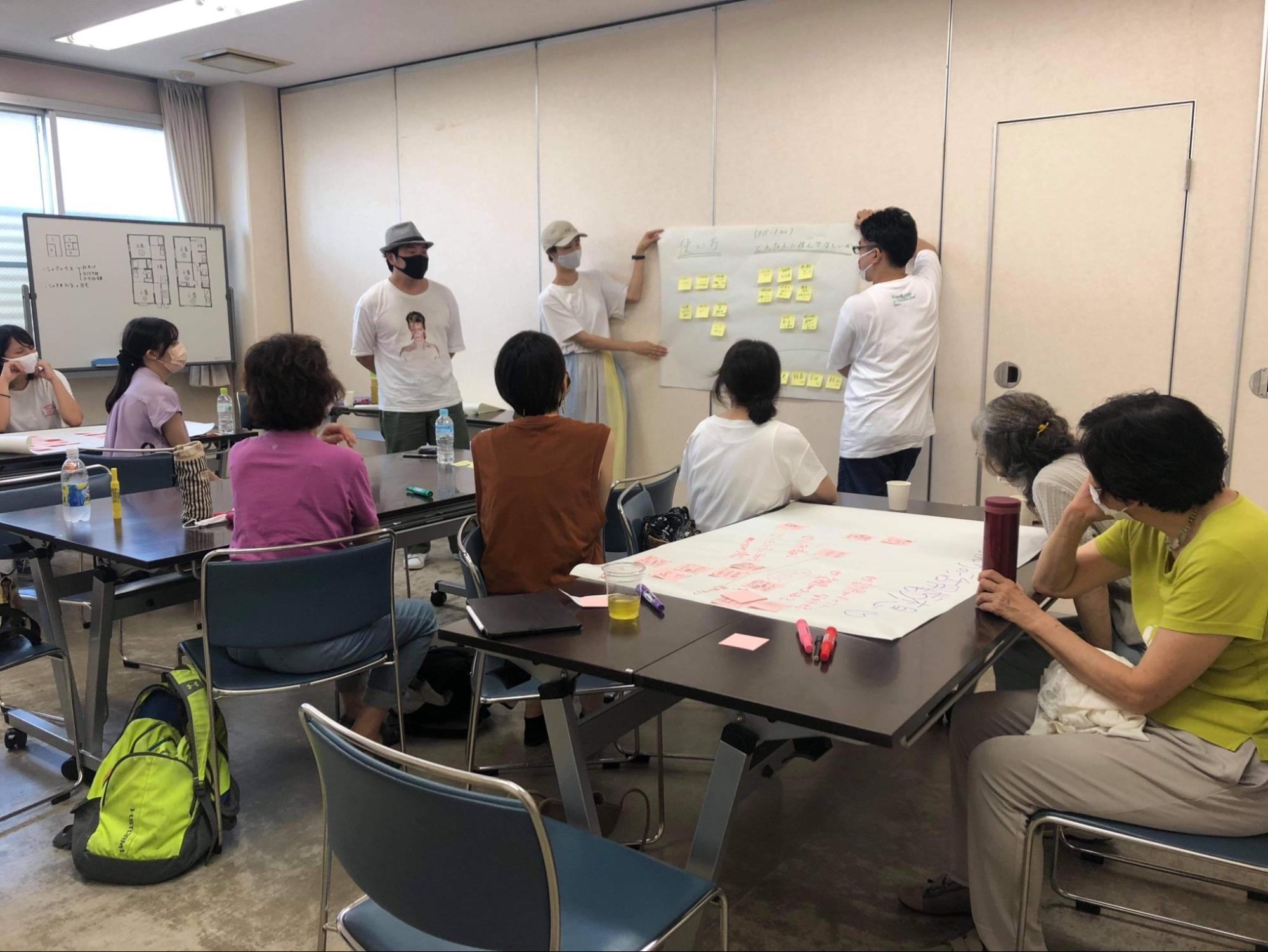 空き家見学会の際には、そのあとに、実際に自分の保有する空き家をどのように活用するか考える「妄想ワークショップ」を行った。そのときに、参加者一同がもっとも盛り上がったのが、湯パートやまざきとなった木造アパートのオーナーの発表だった。