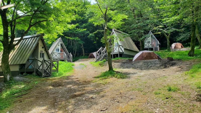 ロッジエリアは、テントサイトからさらに丘を登った場所にある。もともと養老町が管理運営を行っていた養老キャンプセンターをリノベーションしたもの。