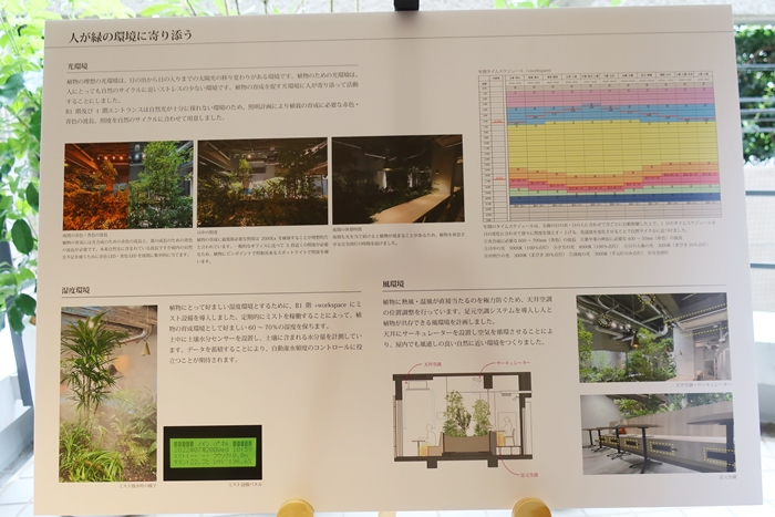 風環境についても空調の風が植物に当たらず、人間の足元にはきちんとあたるようにすることに苦労したという。植物がよい環境にあることで人間に幸せをもたらすと考えると、植えたらおしまいではなく、これからこそが大変なのだろう。