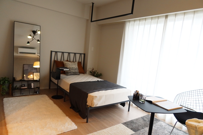 最後に各部屋の様子もみておこう。以前は地下のランドリーを利用してもらう想定で、室内には洗濯機置き場がなかったため、それを増設するなど水回りも変更されている。キッチンと並んで配置されている部屋が多い。間取りはすべてワンルームで専有面積は25.05m2~35.84m2まで。インテリアテイストは淡い色目のモダンタイプ、木目調のナチュラルタイプの2種類が用意されている。賃料は11万5,000円~(共益費は賃料に含む)だ。