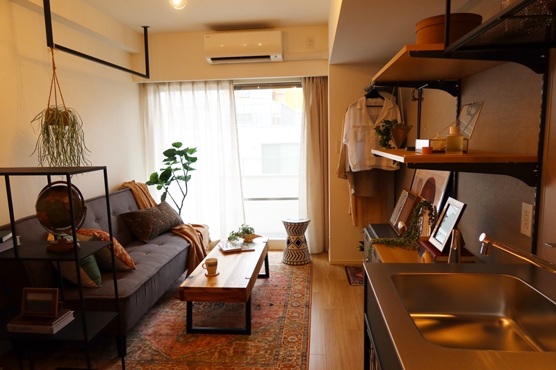 京王新線幡ヶ谷駅から歩いて4分、商店街を抜けたところにある同物件は1988年に建設され、改修前まではマンスリーマンションとして運用されてきた。初台にある東京オペラシティに近いところから、ビジネスマンはもとより、演劇、音楽など芸術関係者の利用も多かったそうだが、コロナ禍で来日する関係者が激減。2020年から稼働率が低下した。築年数も経てきたことから働く場を備えたコンセプト型賃貸に改修することにしたという。