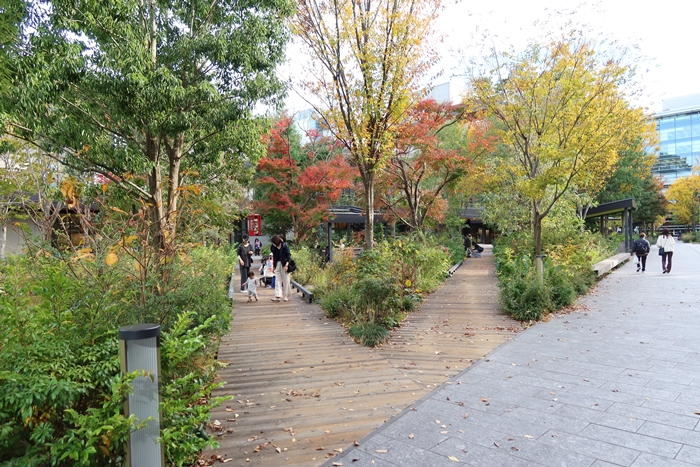 それから40年弱。面白いことに2020年前後からオフィスビルや商業施設、その他の空間に緑が増え始めている。たとえば2020年春以降順次オープンし、新しい形の商業施設として話題になった東京都立川市の「GREEN SPRINGS(グリーンスプリングス)」の建物に囲まれた約1万m2の中央広場は緑と水の空間。ビオトープ、噴水、芝生広場に全長120mに及ぶ階段式の滝などもあり、子どもはもちろん、大人たちものんびりと寛いだ時間を過ごしている。