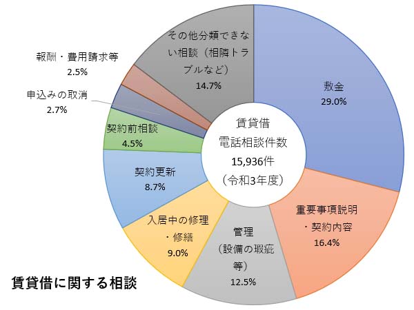 2021年度における賃貸借に関する相談(15,936件)の内訳は、以下の通りである。
