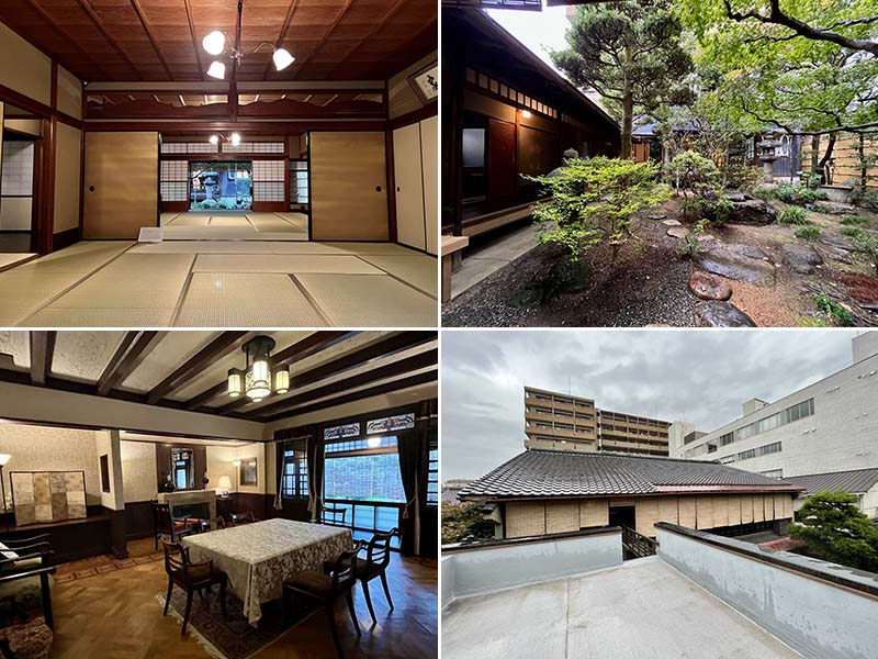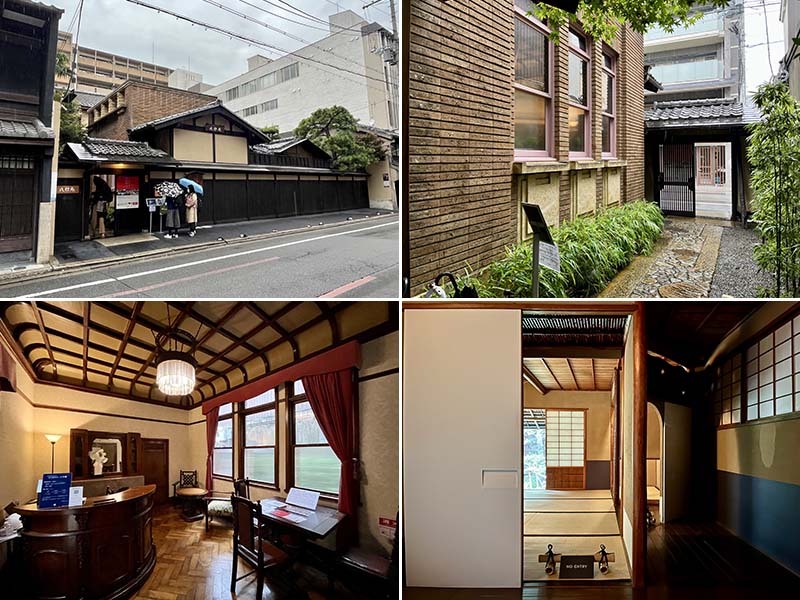 三条町にある京都市指定有形文化財の町家建築「八竹庵(はちくあん)」は2022年に町家再生や和雑貨を手掛ける株式会社くろちくが取得し、現在は一般公開されている。1926(大正15)年に豪商が住宅兼商談の場として建てたもので、通りに面した表屋を持たない「大塀造(だいべいづくり)」だ。表戸を入ってすぐのところに、フランク・ロイド・ライト風の洋館を設けているのが特徴の一つとなっている。この部分は武田五一が手掛け、和室や茶室は数寄屋建築の名工・上坂浅次郎が設計している。