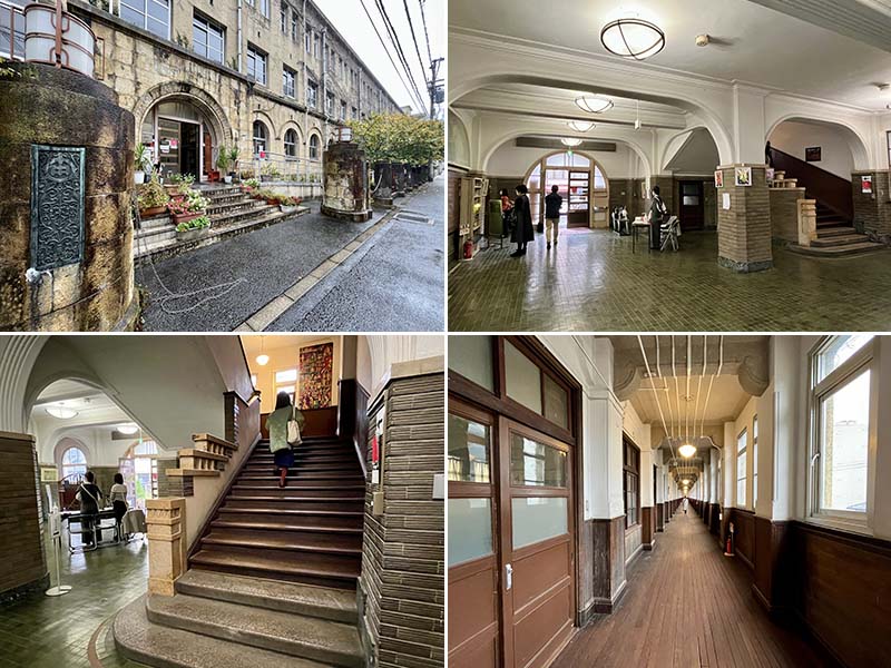 元成徳中学校は現在も下京中学校成徳学舎として部活や体育祭に使われており、地元住民以外はなかなか入る機会がない。見学者はタイルで彩られた豪華なホールや、フランク・ロイド・ライト風の階段手すりなどにカメラを向けていた。
