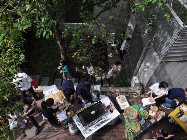 着工前には隣接する西葛西APARTMENTSの1階住戸を改装。シェアキッチン、レンタルスペース「やどり木」を作った。飲食店営業、菓子製造の許可を取得しており、さまざまな使い方ができる。2棟の間の7丁目PLACEを利用してマルシェを開く際には一体となって使えるようになっている。