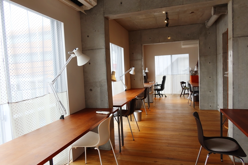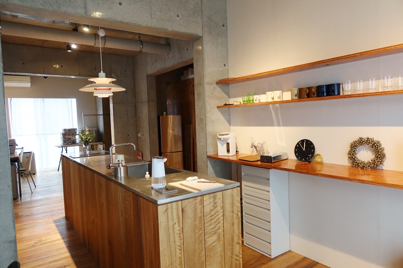 コワーキングスペースはキッチンカウンターの先にあるので、キッチンに誰かがいれば必ず顔を合わせ、挨拶をすることになる。受け付け代わりとでもいえばいいだろうか、なんとなく、互いが顔見知りになる場である。