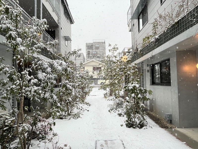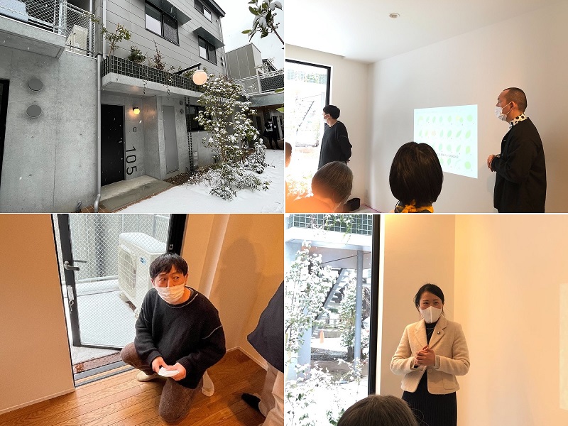 現地見学会が開催されたのは、折しも埼玉県に雪が積もった日。最低気温は0度を記録し、LEEDの評価項目の一つである高断熱・高気密な「快適な室内環境」を肌で感じられる機会となった。