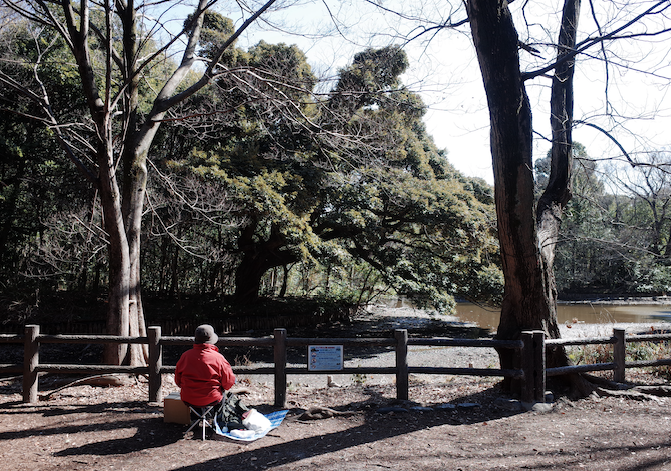 大宮八幡を経て和田堀公園に行くと、残念ながら掻い掘りか何かの工事中できれいな水面を見ることができなかったが、それでも多くの人が絵を描きにきたりしていた。