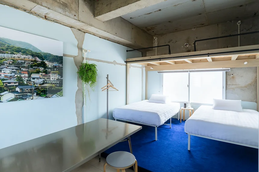 屋上サウナつきマイクロホテル「RE SORT(リゾート)」は、佐世保港のそばにある。築年数約40年の4階建てマンションの一部をリノベーションした施設は、エントランスもロビーもない。ホテルとして使われているのは3室のみで、それ以外は一般の賃貸物件として住人が暮らしている。訪れたときの感覚は、旅行に来たというよりも、家に帰ってきたという表現の方が近いかもしれない。ホテルの目の前で朝3時から賑わう佐世保朝市には、新鮮な食材を求めて訪れるファンも多い。