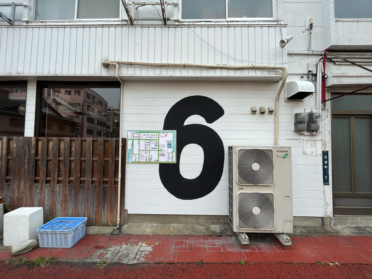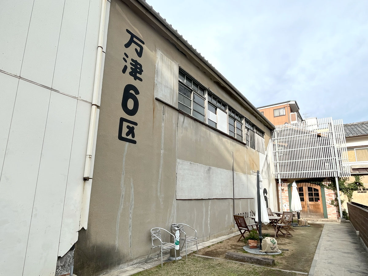 ホテルの周辺を歩いていると、まちの建物の数ヶ所に「万津6区」と描かれたウォールペイントにふいに気づかされる。「万津6区とは、このまちで商いをしていたり、暮らしたりしている、意思を同じくする複数の人たちで進めているプロジェクトのこと。名前は万津町にある町名に、三ヶ町、四ヶ町、五番街と数が続くことにヒントを得て名付けた俗称です。“懐かしさと新しさが交差する、6つ目のまちをつくろう”という想いが込められています」と中尾氏。