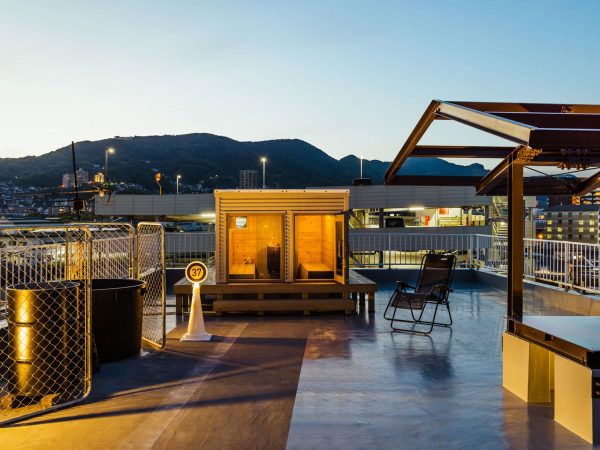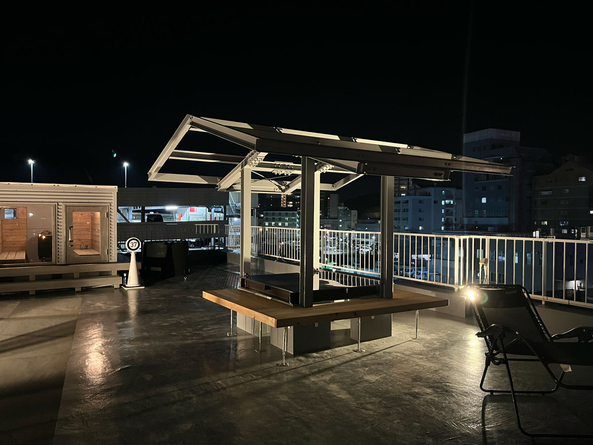 もうひとつの特徴は、マンション屋上に広がる屋外サウナ。サウナ体験に必須となる「サウナ室~水風呂~外気浴」という基本の3セットを屋上で堪能しながら、目の前に広がるのは、佐世保港とその周辺のまちなみだ。山沿いに点々と灯る煌びやかな湾岸夜景も、夜サウナの楽しみだろう。