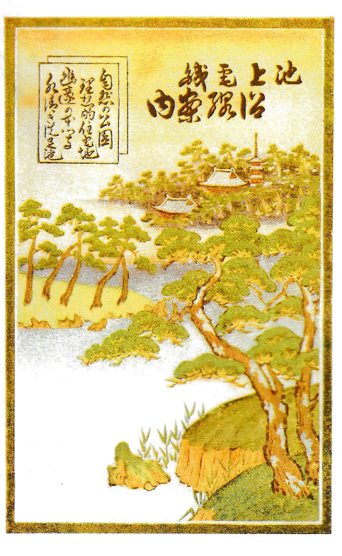 戦前、池上電鐵沿線案内に描かれた洗足池。自然の公園、理想的住宅地、幽邃(ゆうすい)の本門寺、水清き洗足池と書かれている。幽邃とは奥深くてもの静かなことを意味し、風致地区を表現するのによく使われた言葉である明治期には洗足池畔に勝海舟が住んだ。
