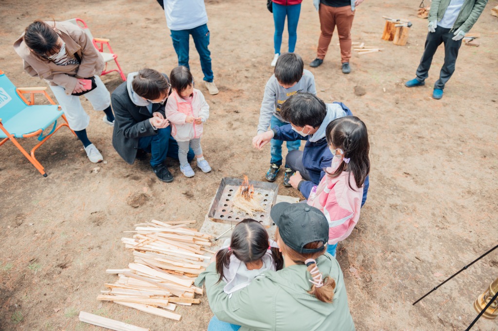 2022年3月20日、大洗キャンプ場で、7つの体験を用意したイベントを実施。体験の1つ目は拠点づくりとしてのテント設営、2つ目は拠点散策としての松ぼっくり集め、3つ目はアウトドア体験として薪割り・焚き火体験、4つ目が焚き火調理(昼食編)、5つ目が松ぼっくりアート体験、6つ目が焚き火調理(おやつ編)、そして7つ目が撮影会だった。30数人が参加して自然空間で焚き火を囲み、高い満足度を得られたそうだ。