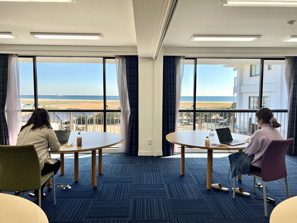 同年12月には2泊3日でのワーケーションプログラムも企画。一般的なワーク(仕事)とバケーション(休暇)だけではなく、地域と関わるプログラムとした。仕事終わりに町内のヨガスタジオで空中ヨガ体験。朝は海沿いを散歩しながらビーチクリーンをしたほか、海を見ながらの読書や星空観察をした。