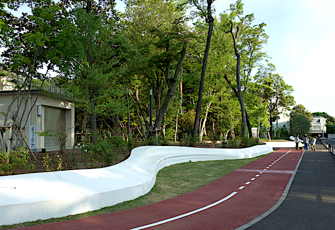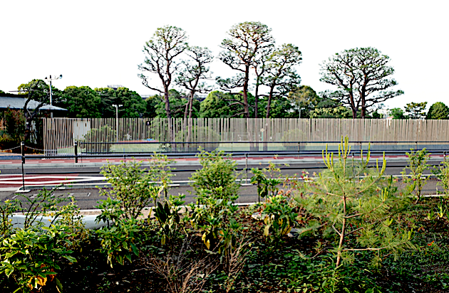 「おおらか」さは他にもあらわれていて、陸上グラウンドには女子選手も練習するため目隠しが設置されているが、背の高いネットや金網で囲われると場所の雰囲気が閉鎖的・抑圧的に感じられ、ウェルビーイングとは対極の場所になってしまう。そこでここでは高さ160センチほどの角材を5センチおきに並べただけのもので仕切ることにした。