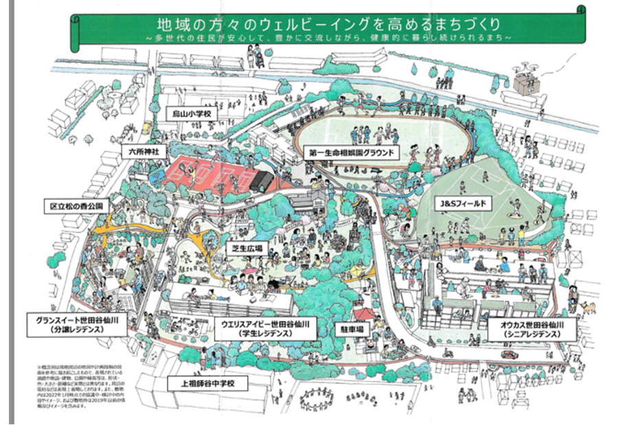 こうした歴史を踏まえ、第一生命としては給田の土地においても、単なる再開発やマンション住宅地建設ではない方法で同地の活用を考えた。健康増進、高齢者支援、地域活性化、子ども・教育、スポーツ振興、安全・防災、環境配慮など、さまざまなコンテンツを通して地域の方々のクオリティ・オブ・ライフ向上を目指す、人と暮らしの未来を見つめるまちづくりプロジェクトを目指すことにしたという。
