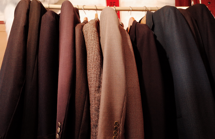 服を見ていて面白いのは、50〜60年前に仕立てられたと思しき背広だ。昔は百貨店などで既製服を買うのではなく、テーラーに頼んで背広をあつらえるのが普通だった。