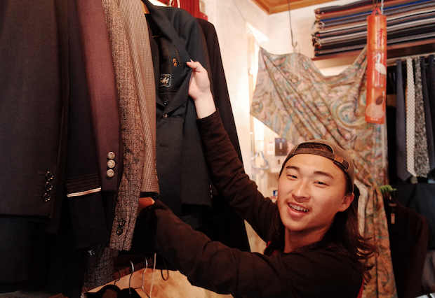 「自分の父親世代(60歳くらい)からおじいちゃん世代(90歳くらい)の服を仕入れて若い世代につないでいくことを店のコンセプトにしています。最近おじいちゃん世代の断捨離が多くて、知り合いの古道具屋さんが、古い家にある物を全部ただでいいから持っていてと言われることが多いようなんです。僕もそれについていって、洋服をレスキューします」と語るのは「服屋シャオ・そなちね」の高橋颯(かざむ)さんだ。