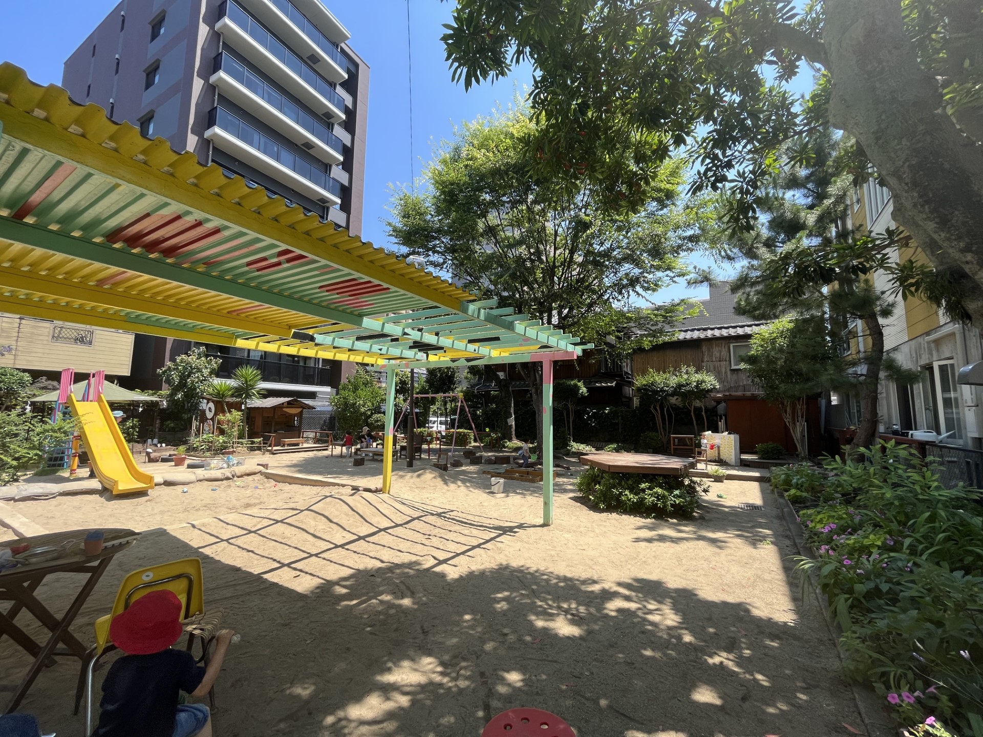 物件を探すため、酒井さんは毎朝娘を自転車で保育園に送るとき、いろいろな道を通った。そこで偶然見つけたのが古小烏公園だった。「うっそうとして荒れた印象でした。ただ、ふと横を見ると空き物件があり、ここが保育園になり、まちにひらかれた面白い風景が浮かんだんです」。
