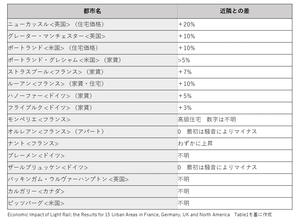 ※2:Carmen Hass-Klau, Graham R. Crampton and Rabia Benjari(2004)Economic Impact of Light Rail; the Results for 15 Urban Areas in France, Germany, UK and North America