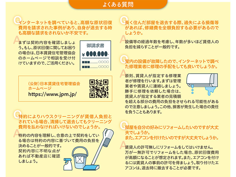 賃貸借契約時の内容は借主自身も忘れてしまっていることが多いため、退去の際は改めて賃貸借契約書を見直すことが適切といえる。