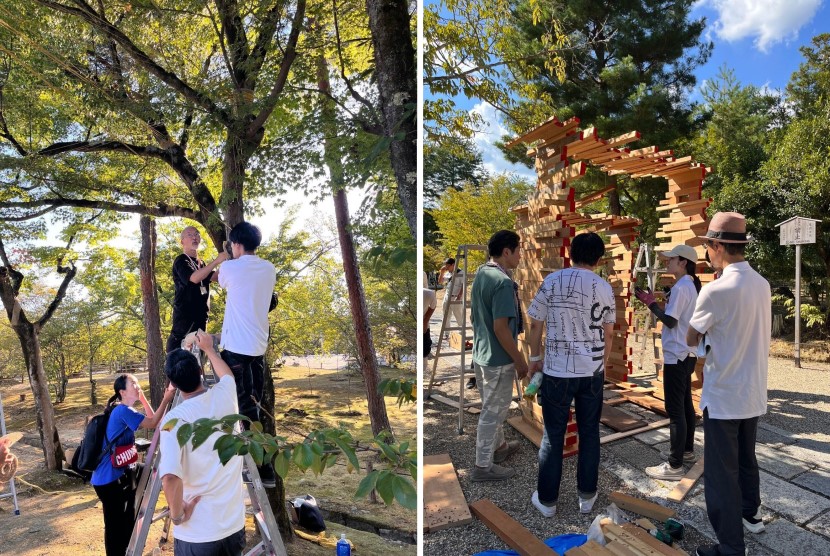 2023年9月17日、古都・京都、真言宗御室派の総本山である仁和寺境内にて、「建築学生ワークショップ 仁和寺」の公開プレゼンテーションが開催された。9月としては異例の猛暑日を記録したなか、全国の建築を学ぶ大学生たちが一堂に会し、フォリーと呼ばれる一日だけの小さな建築空間を実現した。