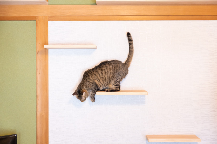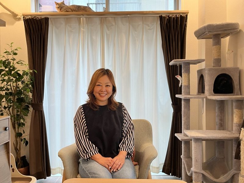 「入居者さんたちは、猫とよく遊んでくれています。一緒に住む保護猫2匹は、過酷な状況から救われた猫たちで、生まれたときから飼い主さんがつきっきりでお世話していたわけではありません。だから、シェアハウスでの暮らしはお互いにちょうどいい距離感なのかもしれません」