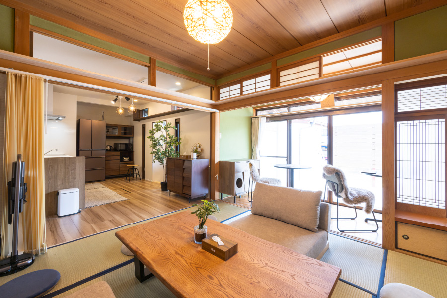 次はのびのびと暮らせる郊外型にしようと物件を探し、糟屋郡篠栗町で2階建ての古民家を購入。リノベーションして、2022年8月に「若杉ハウス」が完成した。博多駅から快速電車で15分ほどの自然豊かな場所で、広々としたリビングや縁側、大きなウッドデッキもあり、個室7部屋を備えている。