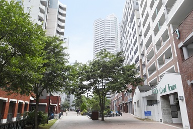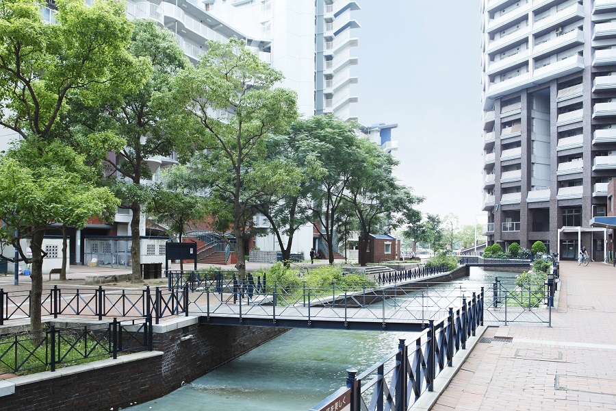 賃貸住宅を探す人が、住まい選びにあたって間取りや設備だけではなく、周辺の環境や立地を重視することはいうまでもない。キャナルタウンは駅前にひとつの街を形成しており、その一角にあるキャナルタウンウェストは、徒歩圏内で暮らしに関わる施設がそろう利便性の高い街だ。