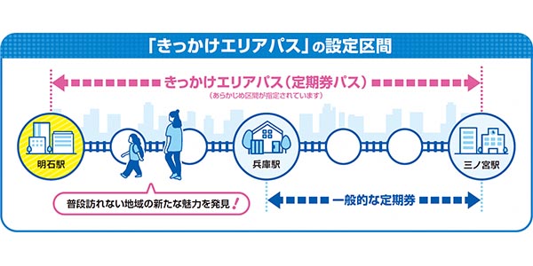 「キャナルタウンウェスト」は、当該区間の途中にあるJR兵庫駅が最寄り駅のため、キャナルタウンウェストに住んで三ノ宮方面に通勤する場合と明石方面に通勤する場合、いずれの場合でも反対方向への定期券も付いてくることになる。こうして鉄道で沿線を手軽に行き来できるようにすることで、JR西日本沿線エリアの魅力を知ってもらい、入居後の暮らしを楽しんでもらおうというのだ。