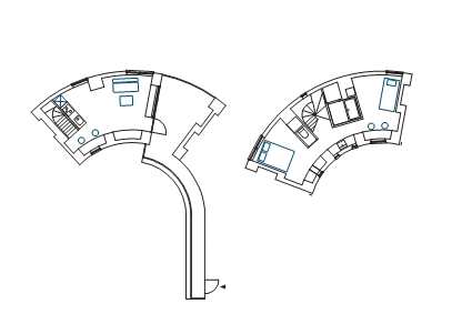 緩く円弧を描く室内は仕切りがないにもかかわらず、住戸全体を見渡しにくいのだが、その分、繋がっているのにコーナーごとに独立しているという不思議な感覚。まっすぐな道を歩くより路地のほうがわくわくするものだが、そんな感じを味わえもする。