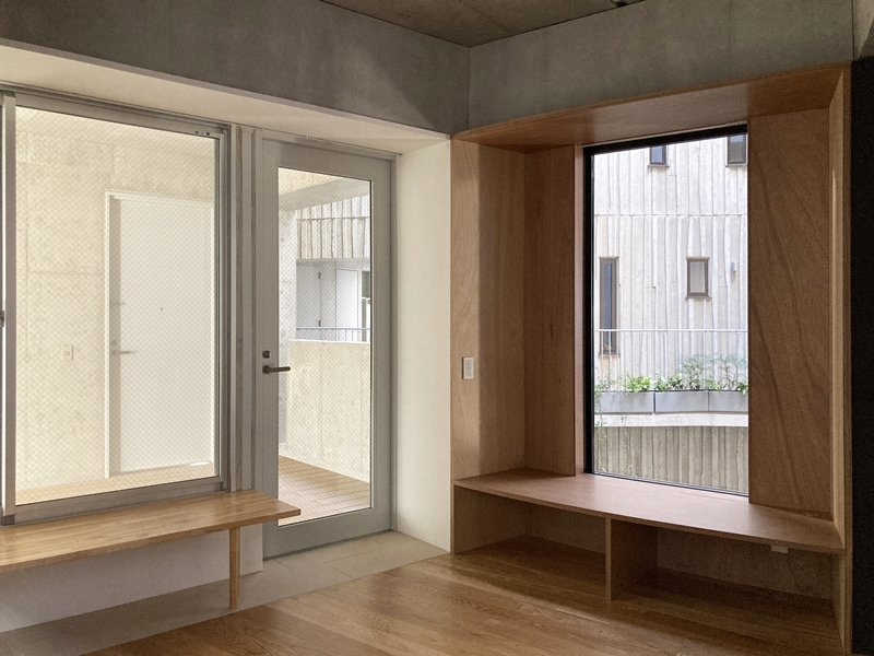 「柱、梁を隠すのではなく、その間に人の居場所をつくるという考え方です。RC造の中高層の建物ではどうしても住空間に対して柱、梁のボリュームが大きくなりがち。それをどうつくるか、考える必要があります」