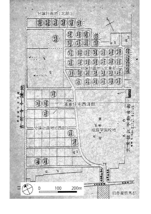 1922年から学園の西部、北部、北東部に住宅地、北西部には別荘地が分譲されたが、その後多くは学園用地となった(地図1)。