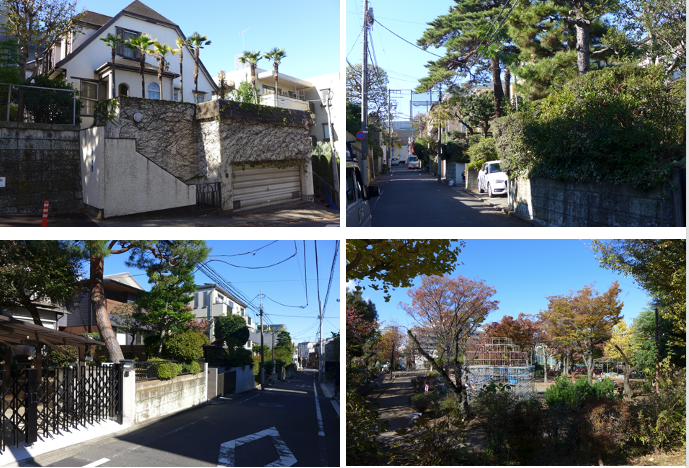 図3は1936年の箱根土地による第2次分譲計画図である。土地の東半分が分譲されているので、西半分は第1次分譲なのだろう。真ん中下の大きな区画が大山園の中心であり、山下亀三郎氏の息子の山下太郎氏の所有で、山下公園と呼ばれていたらしいが、戦後レバノン人の貿易商デビス氏に売却され「デビス邸」と呼ばれた。