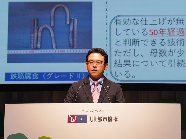 そしてUR理事の田島満信氏は、URの目指すべき団地の方向性について発表。UR賃貸住宅は4大都市圏に分布しており、約1,450団地、約60万戸のストックがある。住民も建物も高齢化が進んでいく中で、URはこれらの豊富なストック活用の方向性として、「多様な世代が安心して住み続けられる環境整備」「持続可能で活力ある地域、まちづくりの推進」「賃貸ストックの価値向上、地域及び団地ごとの特性に応じた多様な活用」を挙げている。社会課題を超えていくために、住民や自治体・企業などと連携・共創・協働を推進していくとのことであった。