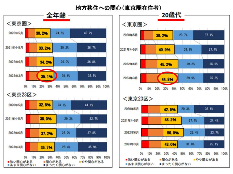 20歳代の約45%が「移住」に関心。移住・二地域居住は広がるか