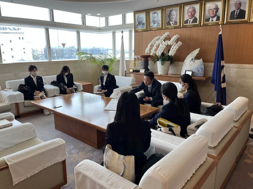 インターンシップでは市長はとにかく多忙である、ということはわかったものの、あらためてじっくりとお話をうかがい、廿日市を次の世代に繋ぐための政策にとても力を入れておられると感じた。特に、宮島訪問税の話題を通じて、まちの遠い未来や将来世代の方々までを視野に入れたまちづくりに取り組んでおられるということが分かった。(吉岡志奈)