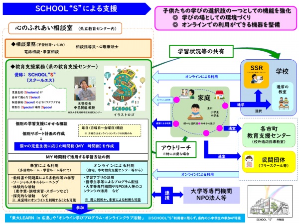 「今、不登校の児童生徒がすごく多いです。SSR(スペシャルサポートルーム)という各学校内のフリースクールがまずあり、そこにも来にくい子は県が運営しているSchool"S"というフリースクールに来る、という仕組みになっています。School"S"には今、220人ぐらい来ています。