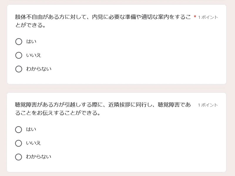 知的障害のお客様への問合せ対応・来店・内見・申し込み・契約から設問を見てみよう。