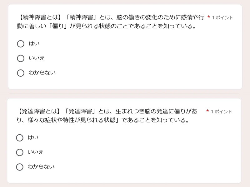 では、基礎知識から見ていこう。精神・発達障害の基礎知識には、以下の2つの設問が並んでいる。