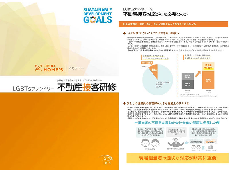 LIFULLさんがFRIENDLY DOORの活動にLGBTQフレンドリーを掲げているのを知っていたので、以前から加盟店様向けのブランディングや接遇研修などでお付き合いがあったLIFULL HOME'Sビジネスパートナー推進部の担当の方にご相談し、株式会社IRIS様をつないでいただいた、という流れです。
