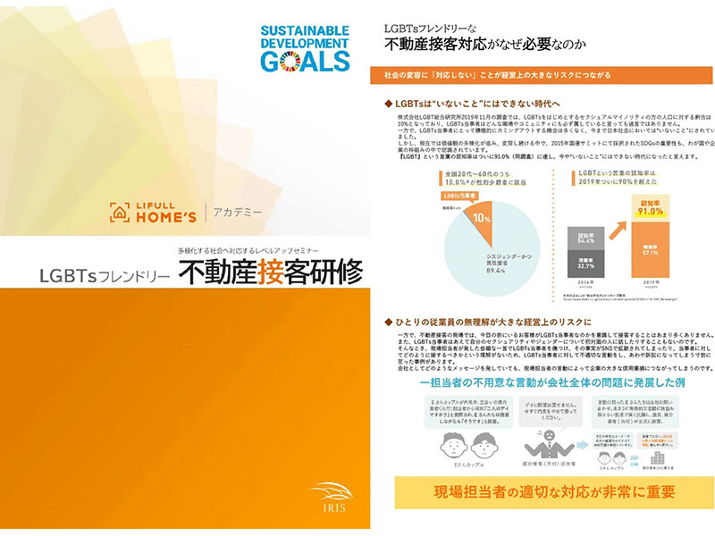 また、ある調査では約95%の方が性的マイノリティの方に対して理解を示しているというデータがあるにもかかわらず、不動産業界においては当事者の方々が不快に感じる事例が絶えないという。そうした状況が、IRISのお客様のインタビュー動画の視聴を通して共有された。