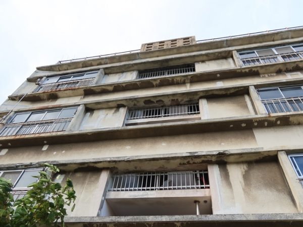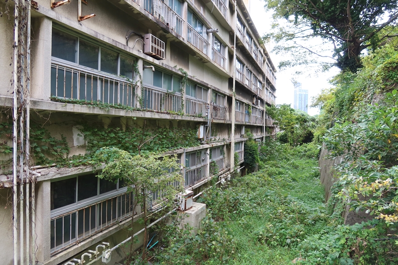 購入したのは3100m2の敷地に建つRC造、4階建て、全24戸からなるA棟とその背後にあるコンクリートブロック造2階建て、全10戸のB棟の2棟。放置されていたこともあって、B棟は緑に飲み込まれそうな状況になっており、とりあえずはA棟の再生から始めることにした。